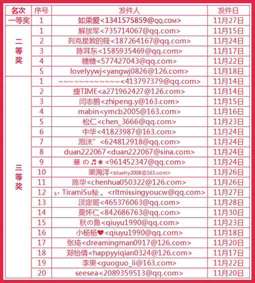 看到本公告后,未發(fā)送過個人詳細(xì)信息的中獎?wù)?,請?2月12日前把個人信息(真實姓名、詳細(xì)地址、聯(lián)系方式)發(fā)送至郵箱: cxy@china-jado.com ,以便我們能及時把獎品寄出,逾期未發(fā)送者視為放棄獎品。