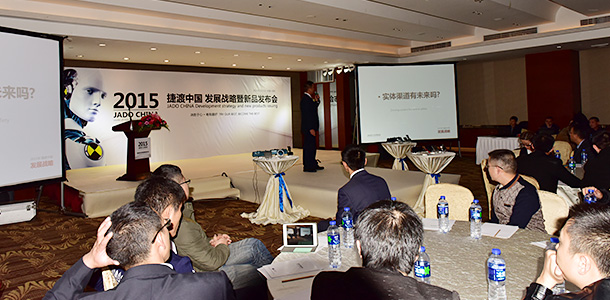 2015年1月15日,JADO捷渡中國發(fā)展戰(zhàn)略暨新品發(fā)布會,在深圳格蘭云天國際酒店隆重召開,全國80余家優(yōu)秀代理商飛赴深圳出席此次會議,眾人濟(jì)濟(jì)一堂、座無虛席。
