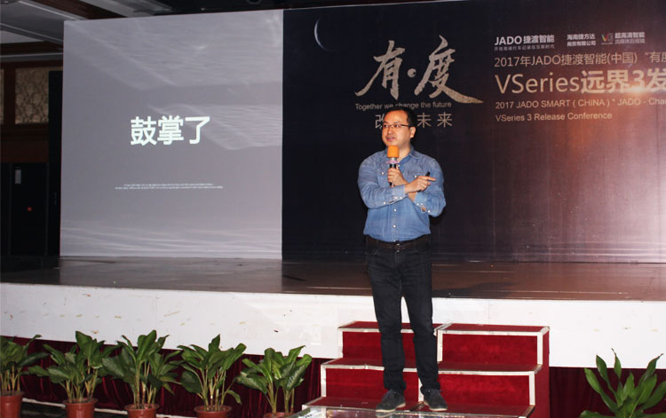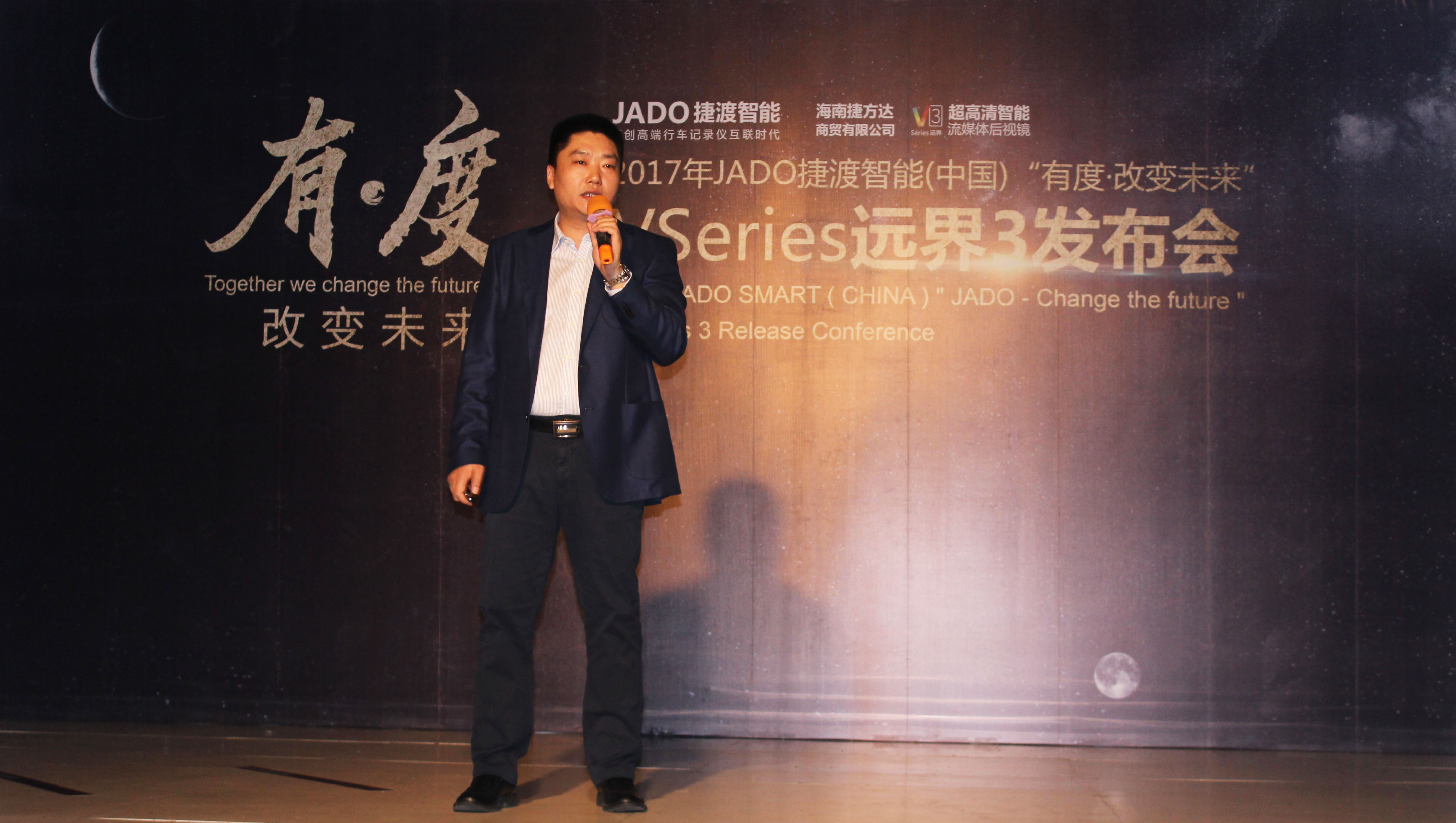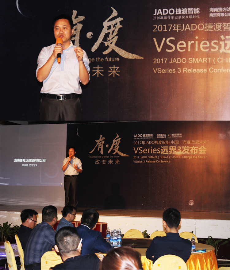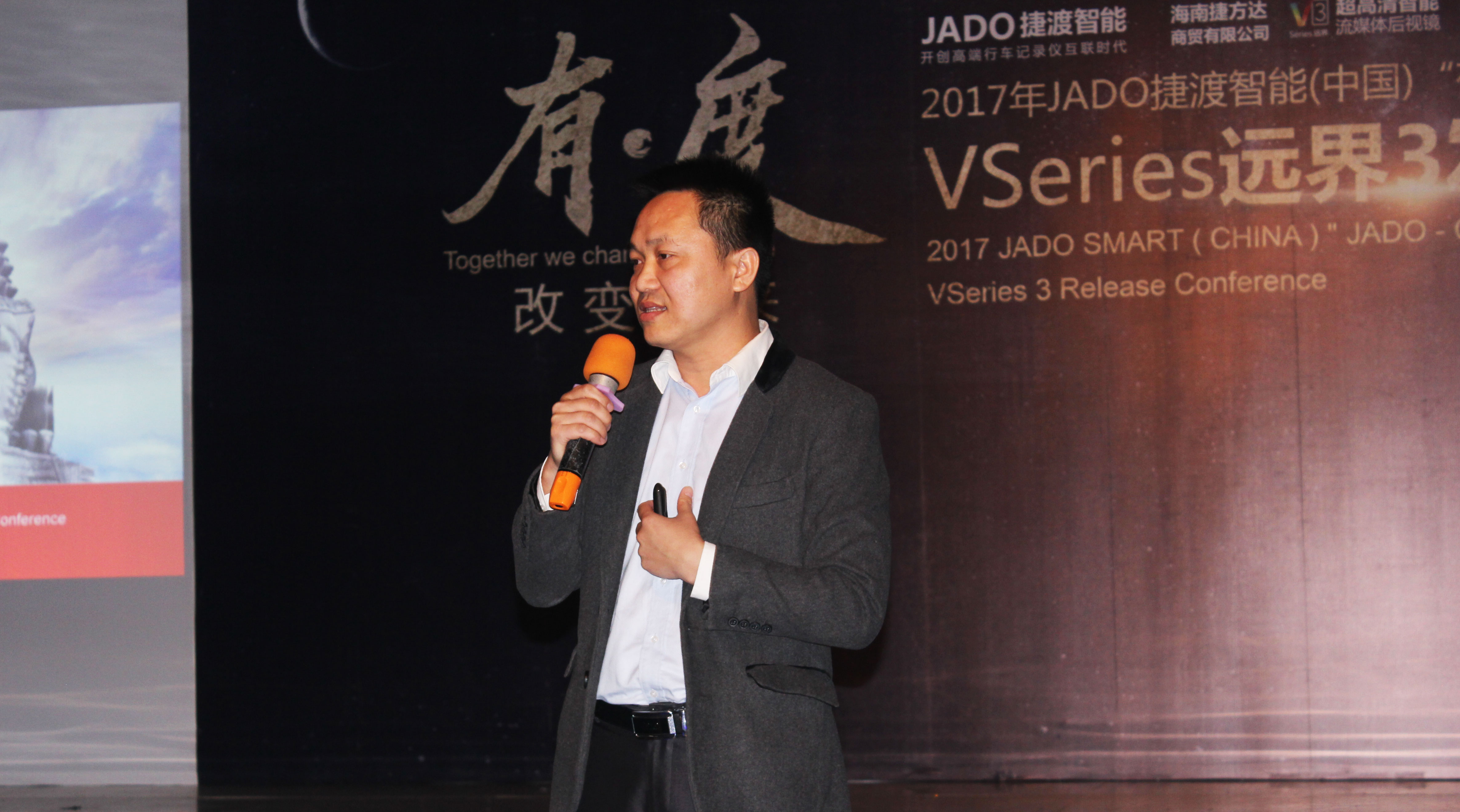 “不忘初心,七年磨一劍!我們迎來了VSeries遠界3超高清智能流媒體后視鏡”,JADO捷渡智能(中國)董事長王杰先生上臺為大家總結2017年JADO捷渡智能(中國)所取得的成績,以及2018年JADO捷渡智能(中國)將進一步開啟“資本化”和“國際化”。他表示:非常感謝海南省區(qū)各戰(zhàn)略合作伙伴的蒞臨,期待2018大家攜手共創(chuàng)美好未來。