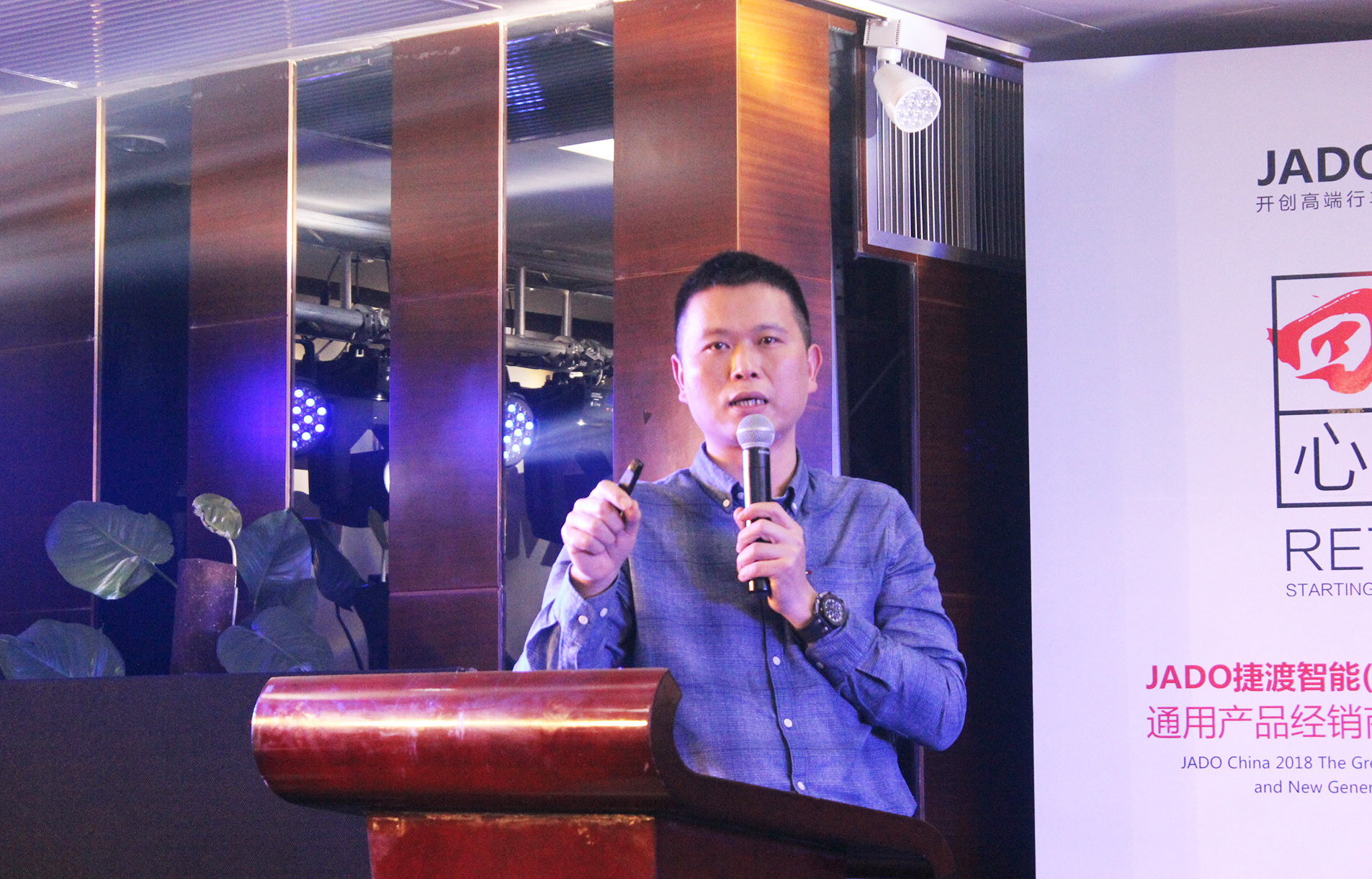 隨后,JADO捷渡智能(中國)營銷中心總經(jīng)理陳問文先生在會(huì)上就新產(chǎn)品應(yīng)當(dāng)如何迅速占領(lǐng)市場,分享了終端市場的制勝之道。還進(jìn)一步闡述如何實(shí)現(xiàn)新理念的創(chuàng)新,極大地吸引了與會(huì)嘉賓的注意力。