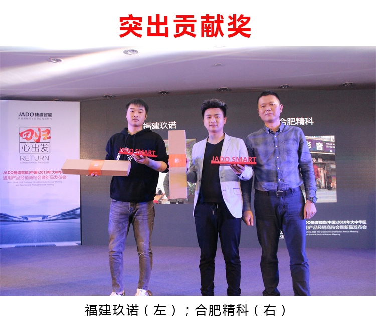 緊接著,JADO捷渡智能(中國)為各個(gè)地區(qū)的優(yōu)秀戰(zhàn)略合作伙伴們予以頒獎(jiǎng)。今日取得的一切離不開在座各位戰(zhàn)略合作伙伴的幫助,感謝大家一直以來的協(xié)作!