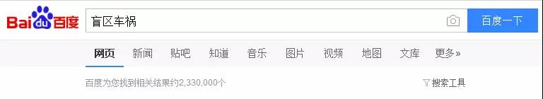 然而,因?yàn)槊^(qū)導(dǎo)致的車禍并不少,在百度搜索“盲區(qū)車禍”,竟有230萬多條。