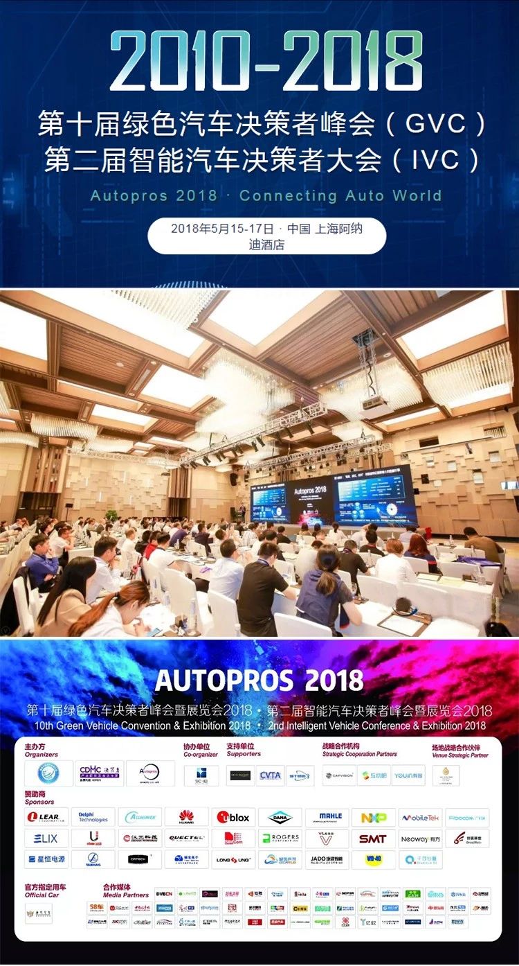 2018年5月15日-17日,由上海決策者經(jīng)濟(jì)顧問股份有限公司、上海決策者產(chǎn)業(yè)研究院汽車委員會(huì)主辦的Autopros2018第十屆綠色汽車暨第二屆智能汽車決策者峰會(huì)&展覽會(huì)在上海阿納迪酒店圓滿落幕,來自全世界的812位與會(huì)代表,305家企業(yè)受邀出席盛會(huì),50家前裝車廠以及53家媒體現(xiàn)場報(bào)道,共同聚焦“綠色、智慧”出行,以創(chuàng)新思維迸發(fā)無限生機(jī),探索未來科技帶來的無限想象。