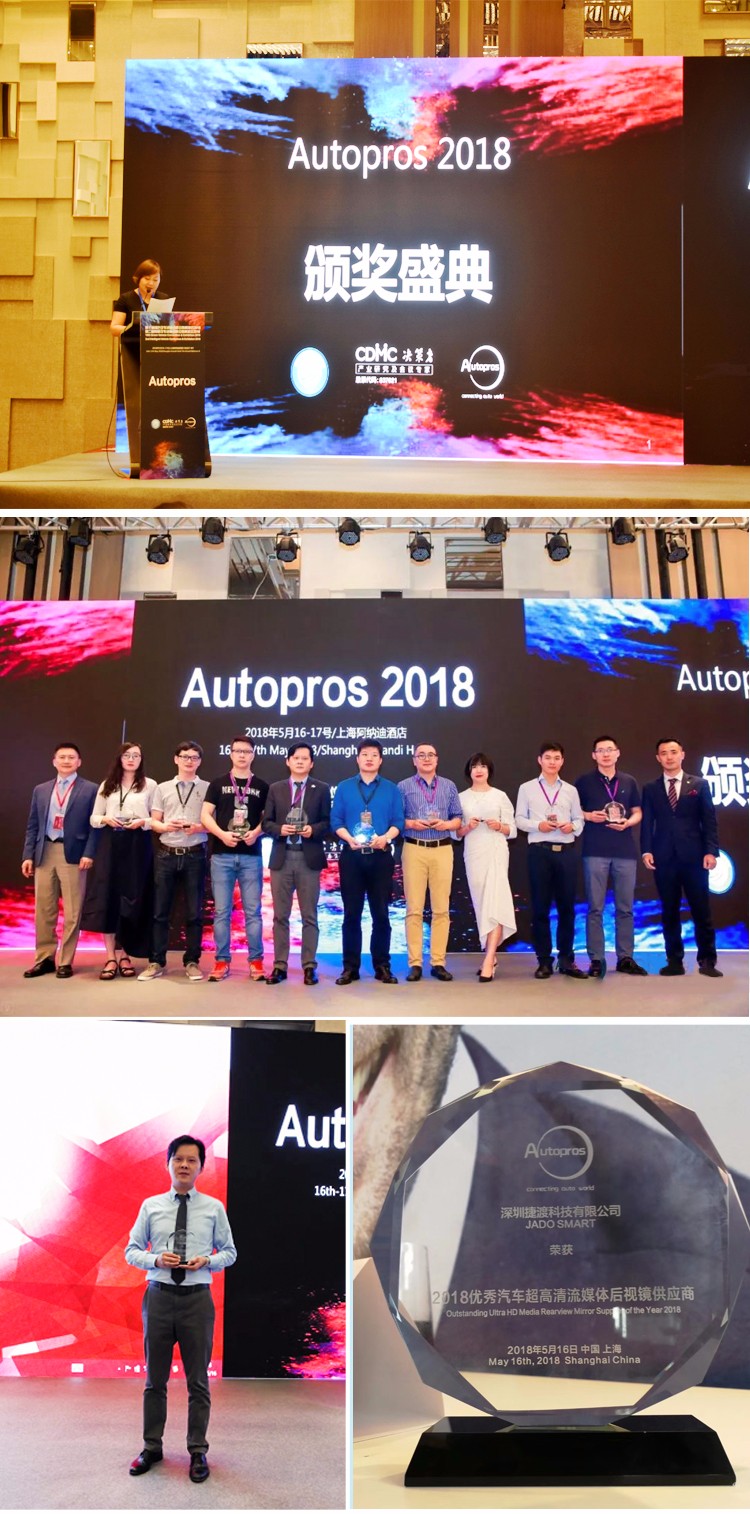 JADO捷渡智能(中國)作為大會(huì)現(xiàn)場唯一受邀的行車記錄儀行業(yè)代表,經(jīng)過組委會(huì)以及前裝車廠的專業(yè)評(píng)選,最終榮獲了“優(yōu)秀汽車超高清流媒體后視鏡供應(yīng)商”大獎(jiǎng),JADO捷渡智能(中國)營銷中心副總經(jīng)理劉赟先生代表出席并領(lǐng)獎(jiǎng),讓前裝車廠對JADO捷渡智能(中國)流媒體后視鏡有了深刻的了解。