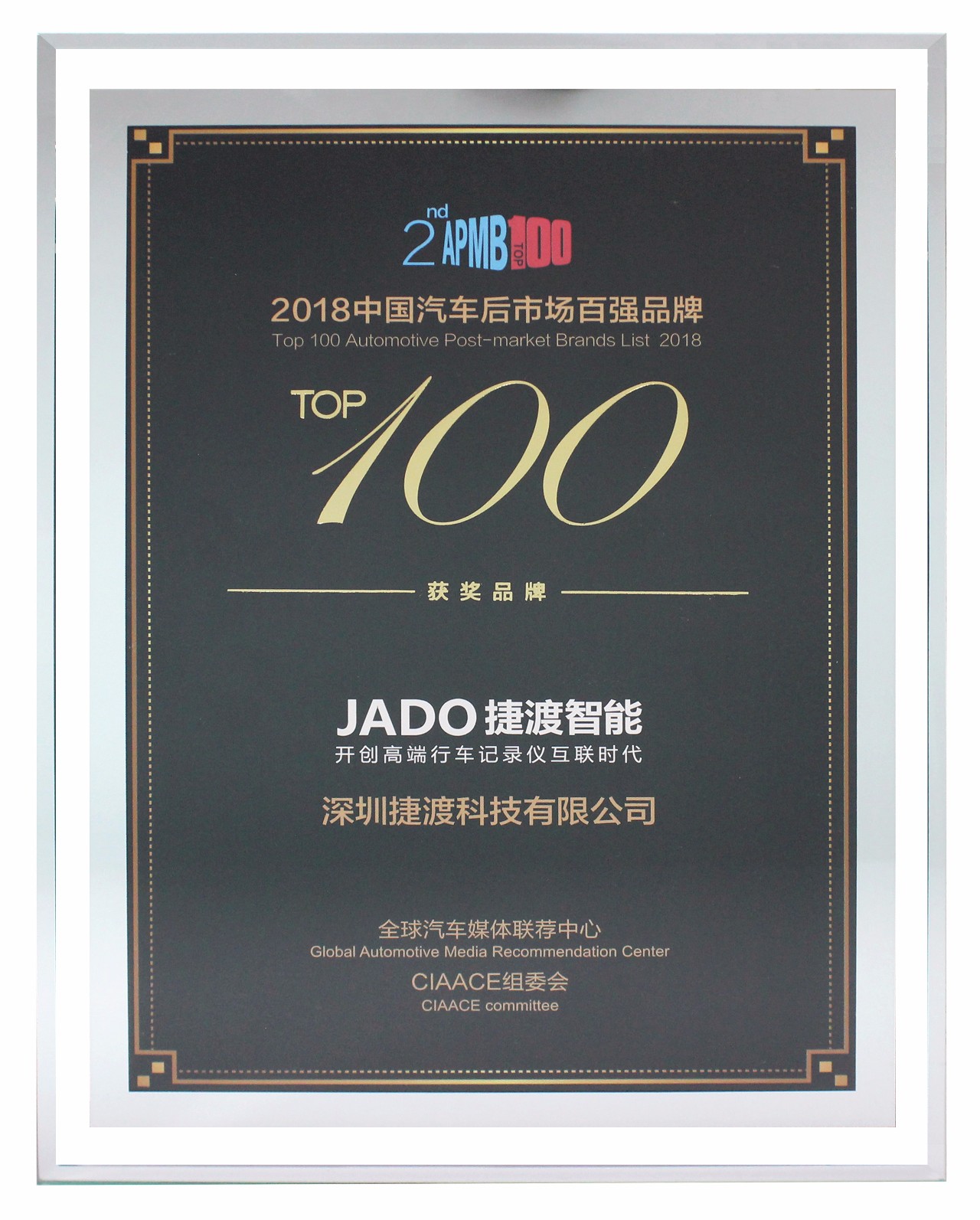 2018年6月21日,由雅森國(guó)際攜手中國(guó)汽車工業(yè)協(xié)會(huì)、中國(guó)對(duì)外貿(mào)易廣州展覽總公司,以及全球權(quán)威發(fā)榜機(jī)構(gòu)共同發(fā)起的《2018第二屆汽車后市場(chǎng)百?gòu)?qiáng)品牌榜》評(píng)選結(jié)果重磅出爐,國(guó)內(nèi)領(lǐng)先的高端行車記錄儀品牌JADO捷渡智能(中國(guó)),憑借多樣化的產(chǎn)品和創(chuàng)新的技術(shù),強(qiáng)勢(shì)登榜!與3M、奇虎360、統(tǒng)一等汽車后市場(chǎng)領(lǐng)域知名企業(yè)同期列入百?gòu)?qiáng)榜單,這也是業(yè)界對(duì)JADO捷渡智能(中國(guó))在行業(yè)地位、創(chuàng)新性、成長(zhǎng)性、發(fā)展?jié)摿Φ确矫娴母叨日J(rèn)可。