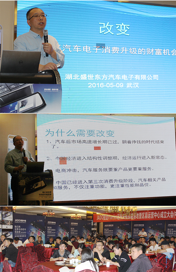2016年5月9日,由武漢盛東方聯(lián)合JADO捷渡中國(guó)舉辦的“JADO捷渡V series遠(yuǎn)界央視戰(zhàn)略落地暨湖北區(qū)縣運(yùn)營(yíng)中心成立大會(huì)”在武漢新海景酒店圓滿舉行,JADO捷渡中國(guó)總經(jīng)理陳問文、盛東方總經(jīng)理彭春文、副總經(jīng)理孫雅蓮及湖北各大區(qū)縣汽車服務(wù)店實(shí)力代表蒞臨現(xiàn)場(chǎng),見證JADO捷渡中國(guó)央視戰(zhàn)略落地湖北的重要一刻。