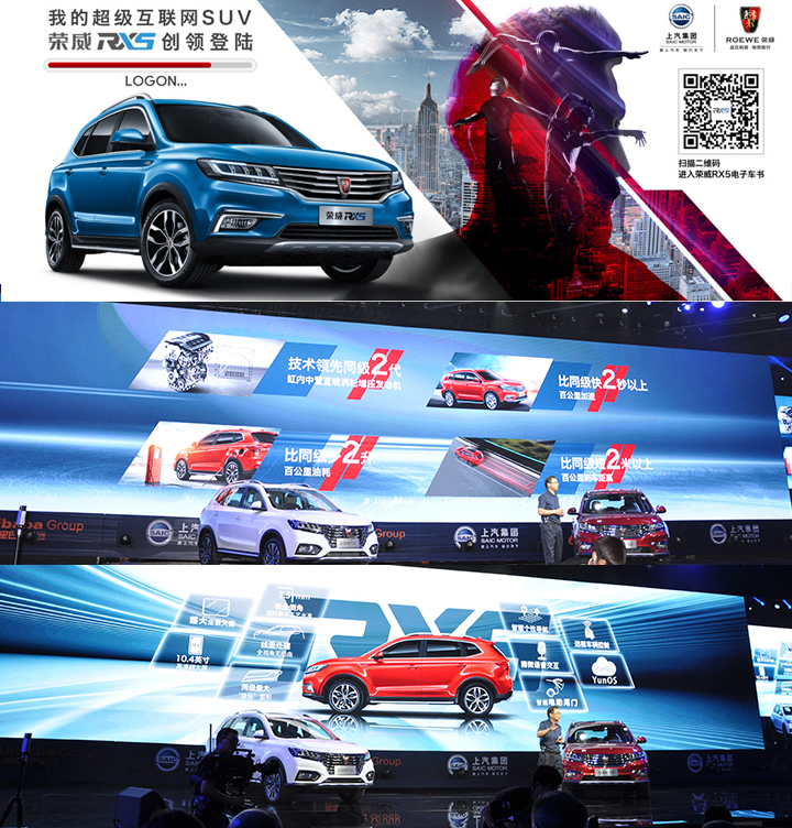 阿里和上汽合作推出的互聯(lián)網(wǎng)汽車榮威RX5于6日下午在杭州云棲小鎮(zhèn)發(fā)布,阿里巴巴創(chuàng)始人馬云、上汽集團(tuán)董事長陳虹、阿里巴巴CEO張勇、阿里巴巴首席技術(shù)官王堅(jiān)、錘子科技羅永浩、知名影視明星王珞丹等現(xiàn)身發(fā)布會(huì)現(xiàn)場(chǎng)。鳳凰衛(wèi)視主持人許戈輝擔(dān)任本次發(fā)布會(huì)主持。