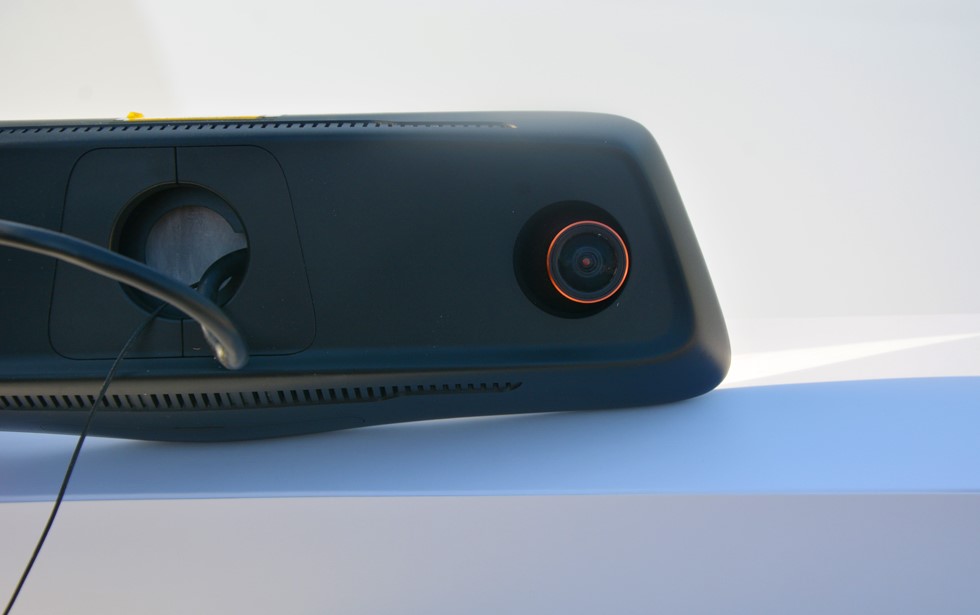 背面,左側(cè)是揚(yáng)聲器,右側(cè)是攝像頭,攝像頭略微凸出,而且還可適當(dāng)?shù)恼{(diào)整攝像頭的位置,且與前置攝像頭相匹配的還有后置攝像頭,后置攝像頭不僅可以記錄行車(chē)過(guò)程中后置場(chǎng)景,而且在倒車(chē)時(shí)也可以使用,當(dāng)然記錄行車(chē)過(guò)程中車(chē)后面的狀況才是后置攝像頭的主要功能。
